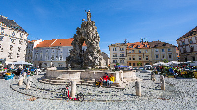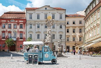 미쿨로프의 여행은 유동인구가 가장 많은 미쿨로프 광장에서 시작합니다. “고양이 머리”라고 불리는 울퉁불퉁한 자갈 바닥을 걸으면 광장 중앙에 성삼위일체탑과 다각형의 분수대가 나옵니다. 주변엔 르네상스 양식의 알록달록한 건물들이 병풍처럼 늘어서 있습니다. 광장 모퉁이에는 검정색과 흰색의 그래피티가 독특한 기사의 집을 볼 수 있습니다. 17세기 초 르네상스 양식의 건축물로 성서 속 인물과 고대 그리스신화 속 이야기를 벽면에 그려놓아 지나가는 이들의 눈길을 사로잡습니다.