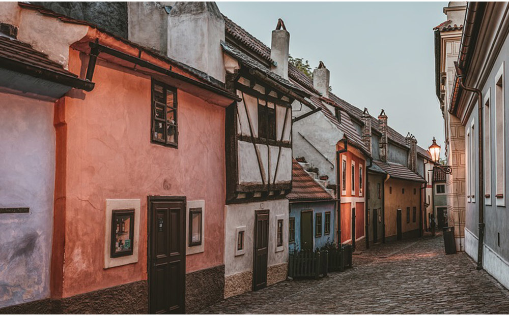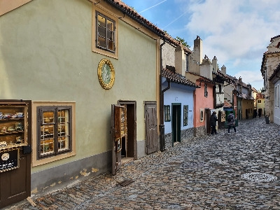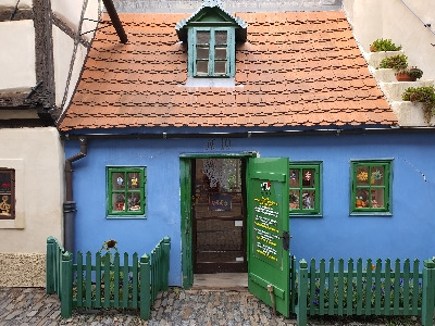 16세기의 작은 집들이 모여 있는 거리로 프라하 성에서 내려오는 길에 위치하고 있습니다. 동화에 나올 법한 좁은 길로, 허리를 굽혀야 겨우 들어갈 수 있을 정도의 작은 집들이 다닥다닥 붙어 있습니다. 원래 이곳은 성에서 일하던 집사와 하인들이 살던 곳이었으나 이후 연금술사들이 모여 살면서 황금 소로라는 이름이 붙었다고 합니다. 하지만 이곳이 유명해진 것은 그 집들 사이에 있는 22번지가 실존주의의 대표적 작가인 카프카가 작품을 집필했던 곳이기 때문입니다.