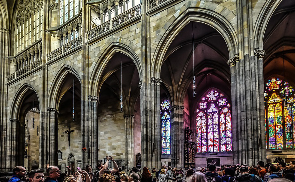 10세기 바츨라프1세때 로마네스크 양식으로 짓기 시작해 1344년 찰스4세에 의해 고딕양식으로 다시 500백년의 공백기를 거쳐 1929년에 완공된 성당으로 제작 기간만 총 1000년에 가까운 성당입니다. 길이124m,폭60m,높이100m의 규모로 내부에는 카를4세를 비롯한 역대 왕들과 성자의 무덤이 있는데 그중 성 얀 네포무츠키의 유해가 안치된 순은으로 만든 무덤은 가장 눈길을 끕니다. 또한 시대에 따라 다양한 기법의 스테인드글라스로 장식되었는데 그 중 알폰스 무하의 아르누보풍 스테인드글라스가 가장 유명합니다.