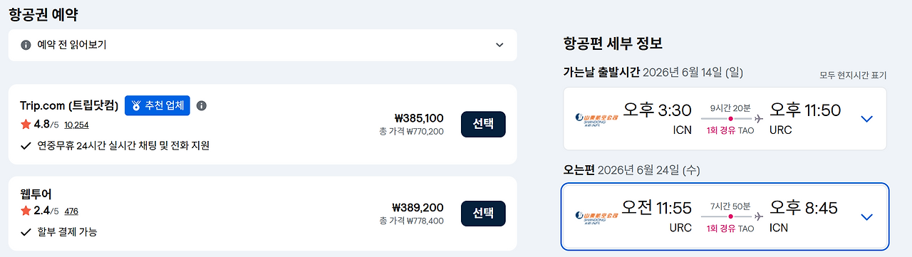 | 귀국 일정 우루무치 11;55분 출발 16;25 칭다오도착 / 4시간 25분 이동 ~ 2시간05분 대기 오후 18;30 징다오출발~20;45 인천도착 |