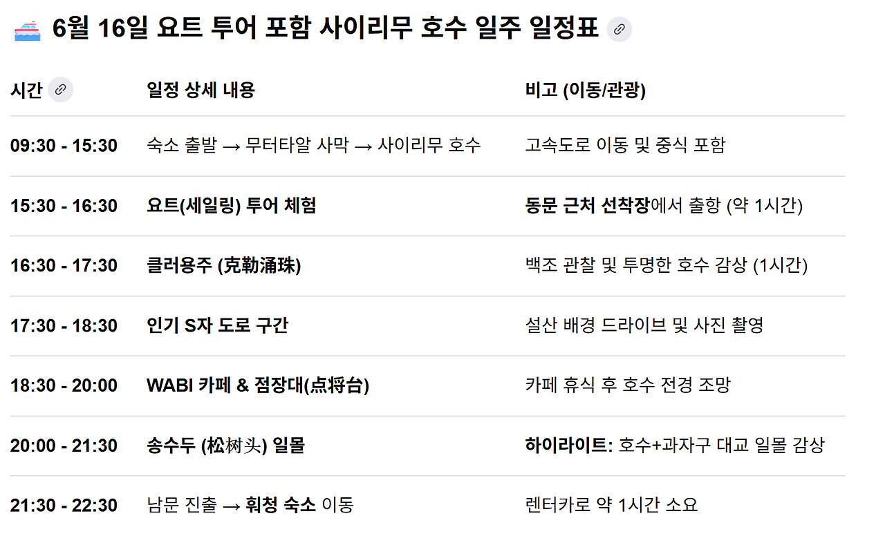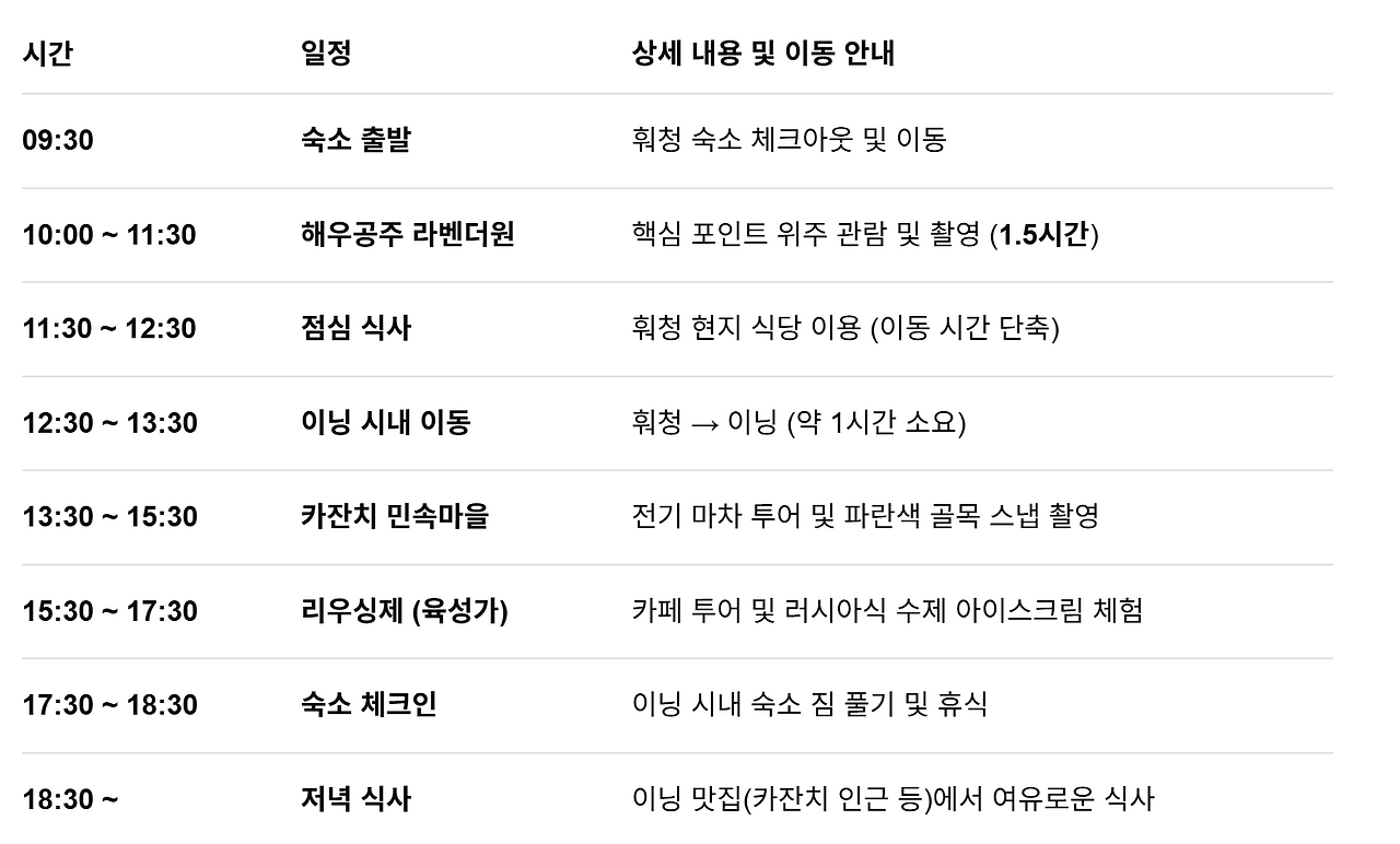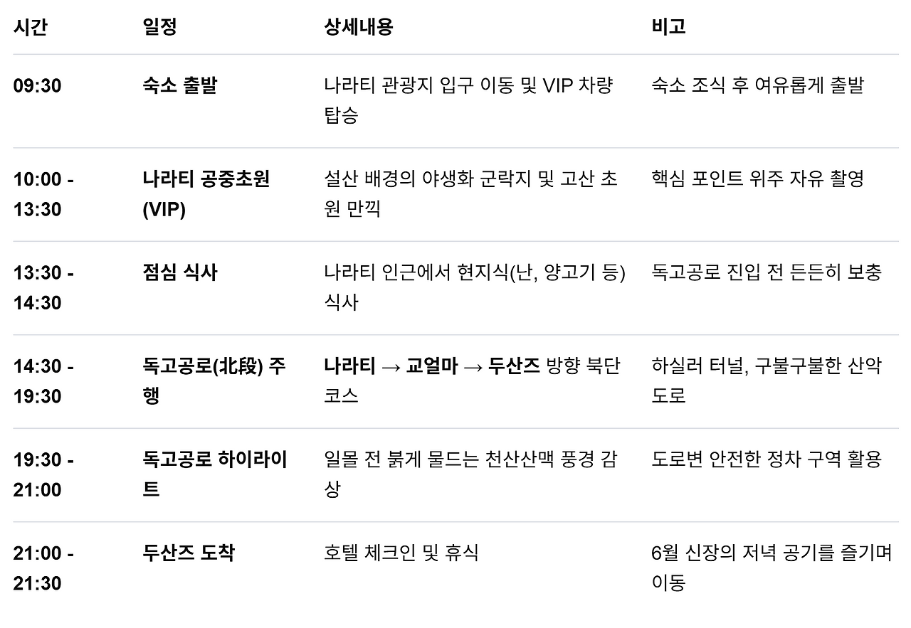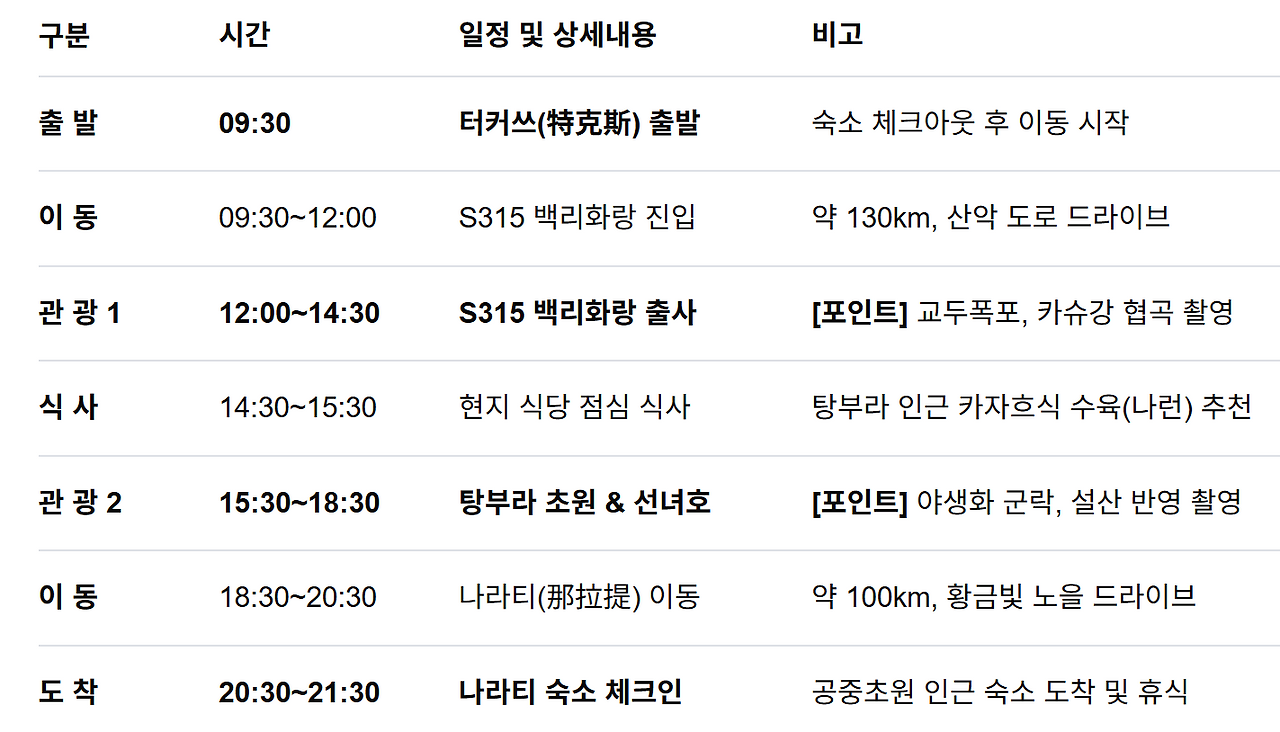 | 7일차/ 카라쥔 초원 전일 일정 |