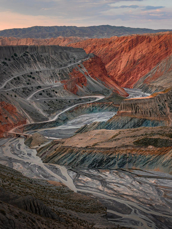 6월 23일의 일몰 시간은 우루무치 기준 저녁 9시 30분 이후이므로, S101 도로를 달리는 동안 황금빛 노을에 물든 단하 지형을 충분히 감상하실 수 있습니다. 여행지 상세 소개 및 사진 촬영 추천 1. 두산즈 대협곡 (Dushanzi Grand Canyon) 텐산 산맥의 눈 녹은 물이 수만 년 동안 깎아 만든 지형으로, 수직으로 깎인 듯한 회갈색 절벽이 압권입니다. 촬영 포인트: 유리 다리: 협곡 사이를 가로지르는 유리 다리 위에서 협곡의 깊이감을 담아보세요. 'I Love Dushanzi' 표지판: 배경으로 광활한 협곡 절벽이 펼쳐져 인증샷 명소로 꼽힙니다. 드론 활용: 협곡의 거대한 균열과 지그재그 도로를 하늘에서 촬영하면 가장 웅장합니다. 2. 안지하이 대협곡 (Anjihai Grand Canyon) '대지의 팔레트'라는 별명답게 붉은색, 노란색, 초록색 등 다양한 광물 색상이 섞인 화려한 협곡입니다. 촬영 포인트: 독수리 부리 절벽 (Eagle Beak Cliff): 협곡에서 가장 아찔하고 가파른 절벽으로, 파노라마 사진 촬영에 최적입니다. S자 커브 구간: 강물이 굽이치는 골짜기와 오색 지층이 조화를 이루는 지점을 찾아보세요. 3. S101 국방도로 (천산 지리 화랑) 우루무치와 우쑤를 잇는 과거 국방 도로로, '백리단하(Baili Danxia)'라 불리는 붉은 사암 지형이 약 300km에 걸쳐 펼쳐집니다. 촬영 포인트: 천풍 단하 (Sky Gallery): 오렌지, 노랑, 파랑, 초록색 층이 섞인 절벽이 마치 마천루처럼 솟아 있습니다. 칸스워터 저수지 인근: 붉은 단하와 푸른 저수지 물빛이 대비를 이루는 구간입니다. 도로 굽이길: 도로 위에서 끝없이 펼쳐진 붉은 산맥을 배경으로 차량과 함께 담는 로드샷이 인기입니다. |