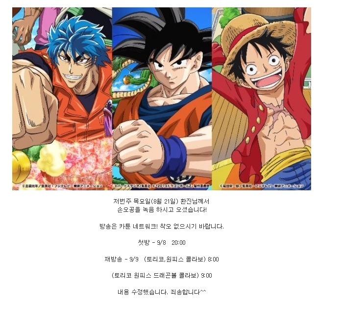 작성자나야군인듯 작성시간 14.09.05 그런데 베지터 성우이신 김민석 성우님은 쾌차하셨나요? 병원에 입원했단 소식을 들은것같아서요
