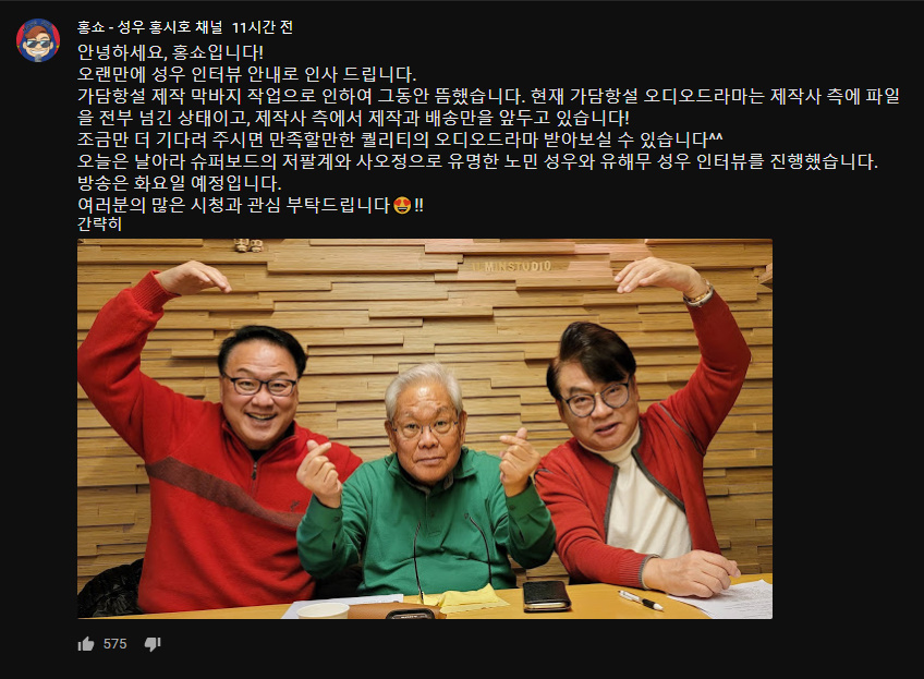 [[정보]]성우 홍시호님 공식유투브 방송 노민 성우님& 유해무성우님 인터뷰 방송예정! 작성자흑태자Kai|작성시간20.11.22|조회수724 목록 댓글 0 글자크기 작게가 글자크기 크게가 출처:홍쇼 - 성우 홍시호 채널 공식유투브 https://www.youtube.com/c/%ED%99%8D%EC%87%BC/community 다음검색 현재 게시글 추가 기능 열기 북마크 공유하기 신고 센터로 신고 댓글 댓글 0 댓글쓰기 답글쓰기 댓글 리스트