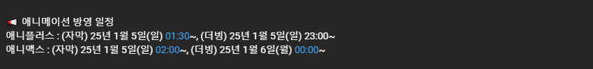 [[정보]]나 혼자만 레벨업 -ARISE FROM THE SHADOW- 1월 5일 오전01시 첫방송!! 작성자흑태자Kai|작성시간24.12.25|조회수206 목록 댓글 1 글자크기 작게가 글자크기 크게가 2024. 12. 22 출처:D&C WEBTOON youtube https://www.youtube.com/watch?v=4J34fSxIKf42024. 12. 23 출처:강수진과 빛의덕후단 youtube https://www.youtube.com/watch?v=RY8simwCbys출처:.cineq 공식홈페이지 https://www.cineq.co.kr/Event/Info?eventId=3583&eventSort=-1 다음검색 현재 게시글 추가 기능 열기 북마크 공유하기 신고 센터로 신고 댓글 댓글 1 댓글쓰기 답글쓰기 댓글 리스트 작성자한국성우♥ | 작성시간 24.12.25 나혼렙 2기 : 한국어더빙 ) 완전 기대 中 ~ ❤️❤️❤️❤️❤️❤️❤️❤️ 댓글 전체보기