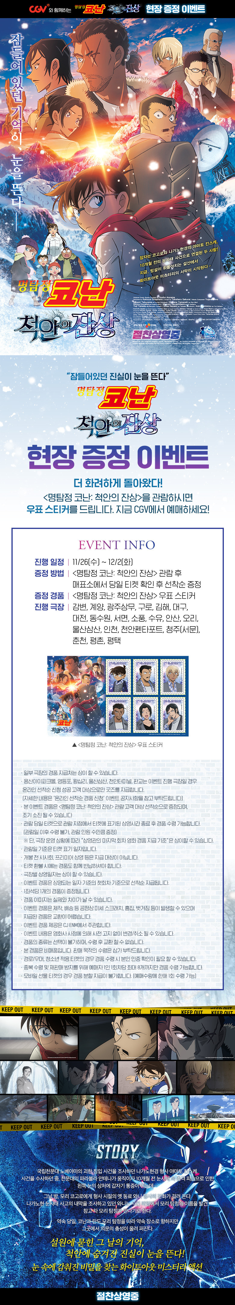 [[정보]]CGV명탐정 코난: 척안의 잔상 현장이벤트 작성자흑태자Kai|작성시간25.11.29|조회수123 목록 댓글 0 글자크기 작게가 글자크기 크게가 2025.11.27 출처:월야야 youtube https://www.youtube.com/shorts/cQrUvy4okD8출처:CGV 공식홈페이지 https://cgv.co.kr/evt/eventDetail?evntNo=202511243934출처:CGV 공식홈페이지 https://cgv.co.kr/evt/eventDetail?evntNo=202511173812 다음검색 현재 게시글 추가 기능 열기 북마크 공유하기 신고 센터로 신고 댓글 댓글 0 댓글쓰기 답글쓰기 댓글 리스트