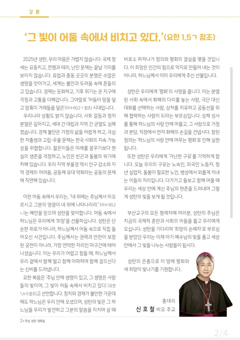 12월 25일 주님 성탄 대축일 작성자김광태(홍보분과)|작성시간25.12.24|조회수89 목록 댓글 0 글자크기 작게가 글자크기 크게가 다음검색 현재 게시글 추가 기능 열기 북마크 공유하기 신고 센터로 신고 댓글 댓글 0 댓글쓰기 답글쓰기 댓글 리스트