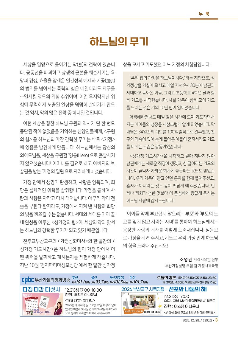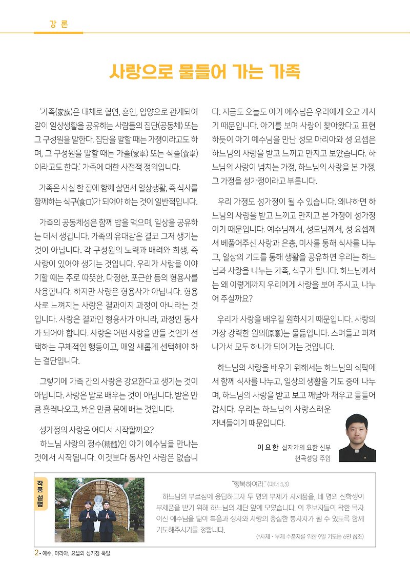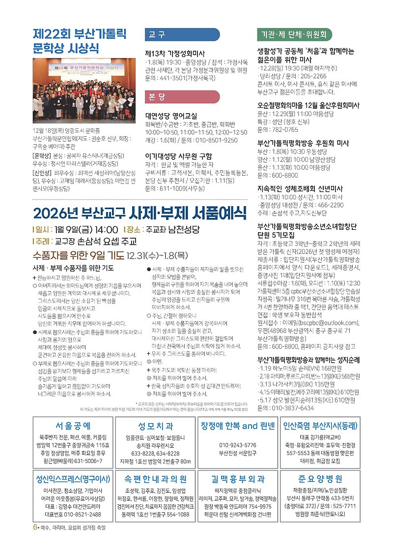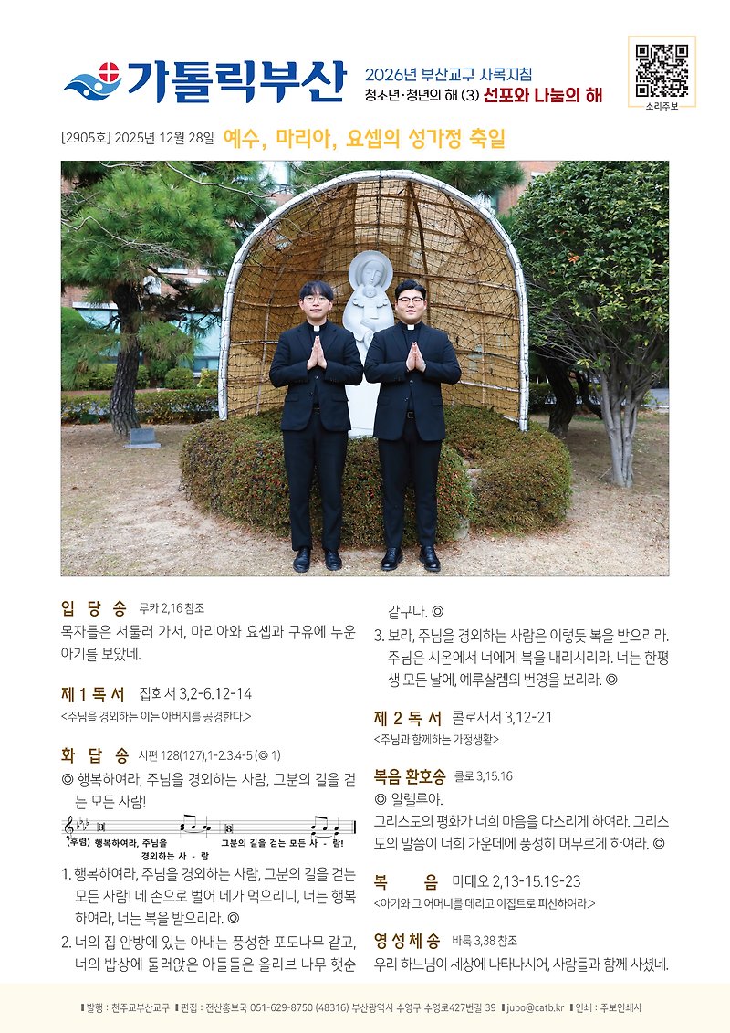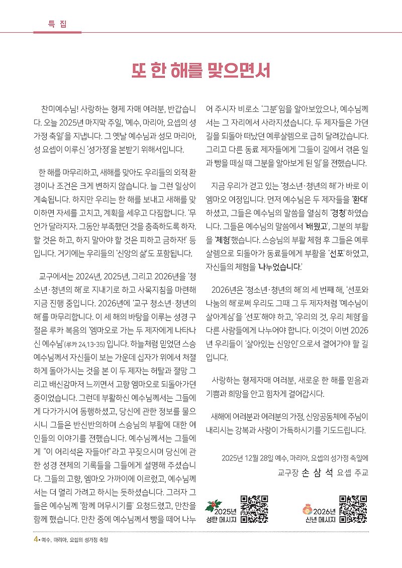 12월28일 예수, 마리아, 요셉의 성가정 축일 작성자김광태(홍보분과)|작성시간25.12.24|조회수33 목록 댓글 0 글자크기 작게가 글자크기 크게가 다음검색 현재 게시글 추가 기능 열기 북마크 공유하기 신고 센터로 신고 댓글 댓글 0 댓글쓰기 답글쓰기 댓글 리스트