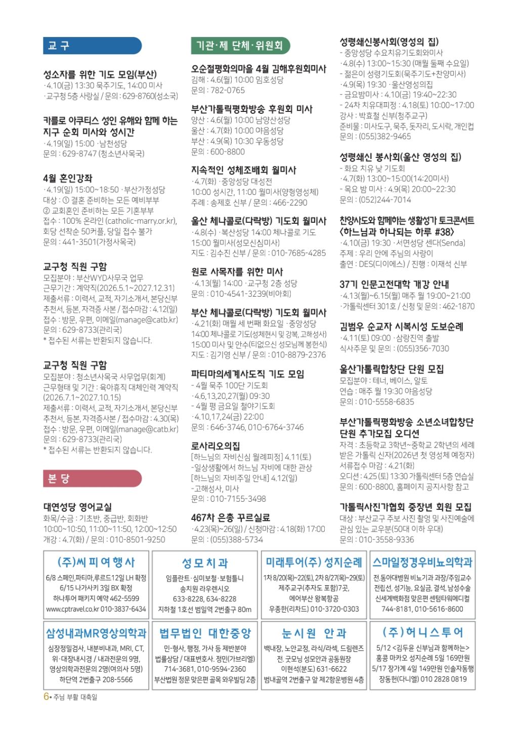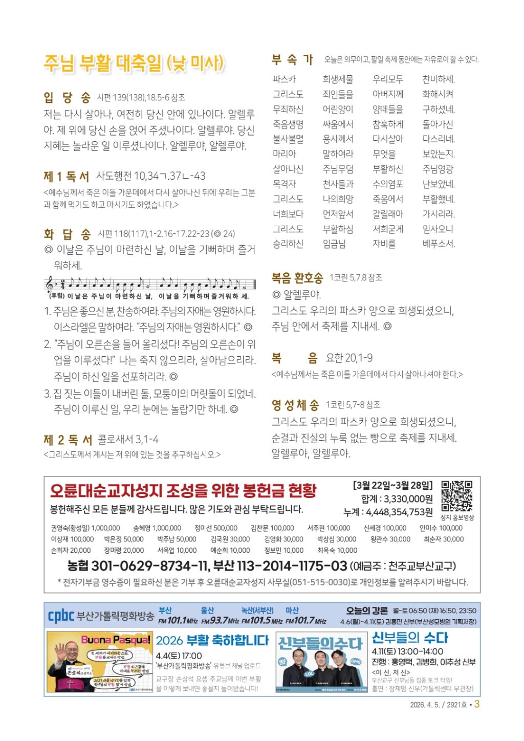 2026년 04월 05일 일요일[백] 주님 부활 대축일(파스카 성야) 작성자김광태(홍보분과)|작성시간26.04.02|조회수12 목록 댓글 0 글자크기 작게가 글자크기 크게가 다음검색 현재 게시글 추가 기능 열기 북마크 공유하기 신고 센터로 신고 댓글 댓글 0 댓글쓰기 답글쓰기 댓글 리스트