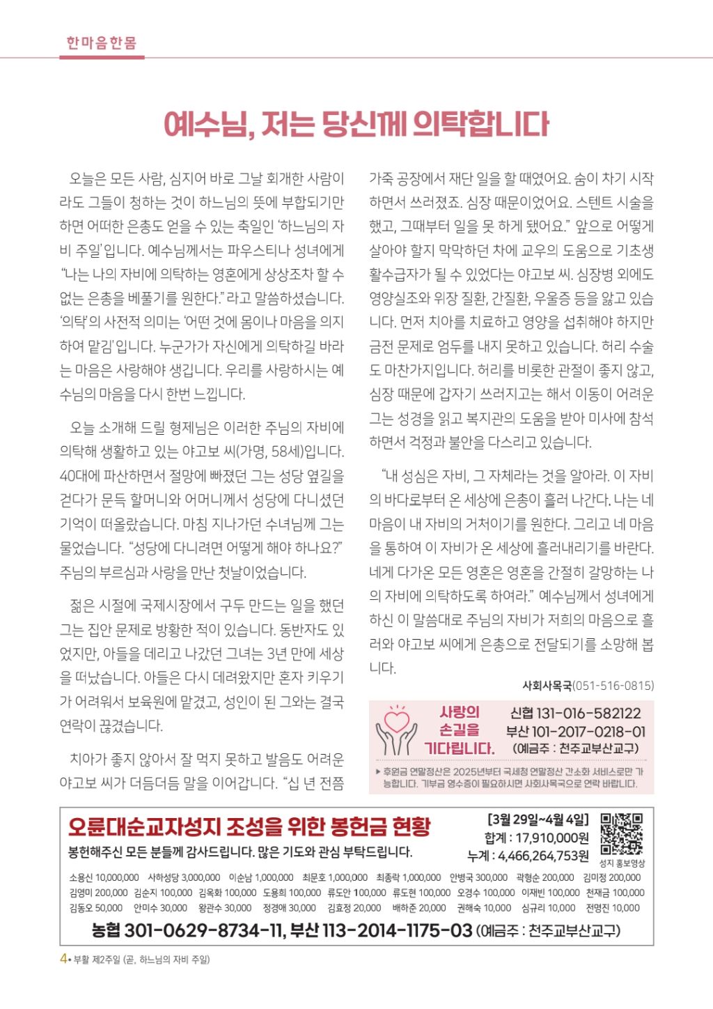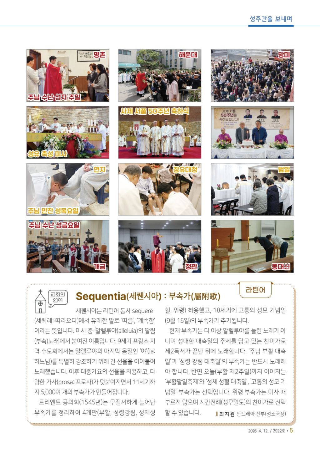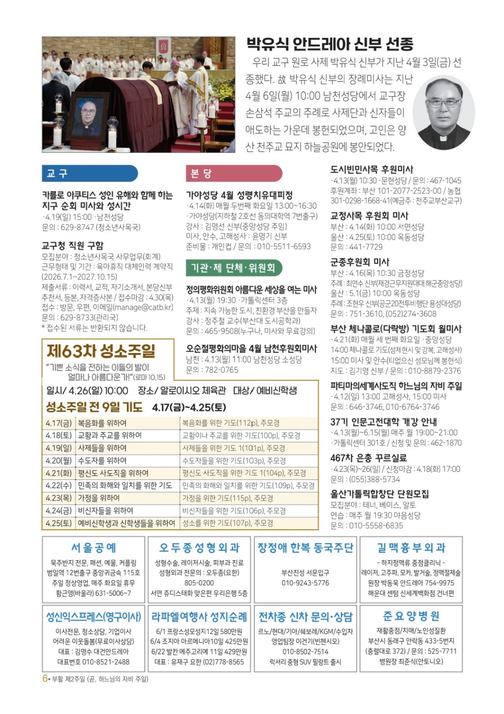 2026년 04월 12일 일요일[백] 부활 제2주일 곧, 하느님의 자비 주일 작성자김광태(홍보분과)|작성시간26.04.08|조회수15 목록 댓글 0 글자크기 작게가 글자크기 크게가 다음검색 현재 게시글 추가 기능 열기 북마크 공유하기 신고 센터로 신고 댓글 댓글 0 댓글쓰기 답글쓰기 댓글 리스트