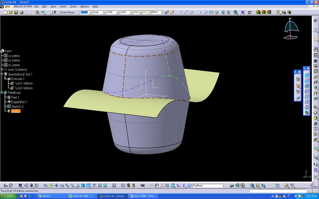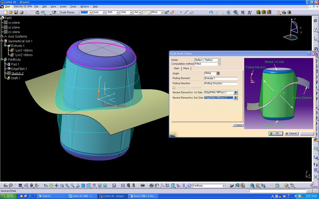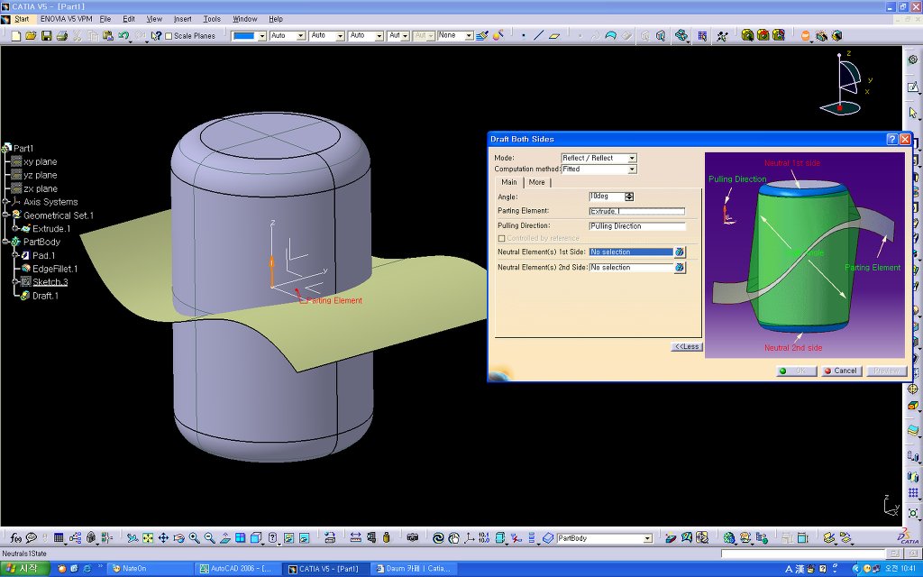 Insert-Advanced Dress-up Features-Draft Both Sides 클릭 Parting Elememt로 서페이스를 선택