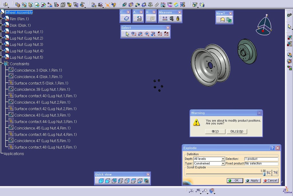 ###. 조립/분해 절차도??를 만들때 유용하다. 이는 그림처럼 익스플로드 아이콘을 클릭하면 창이 뜨는데, 여기서