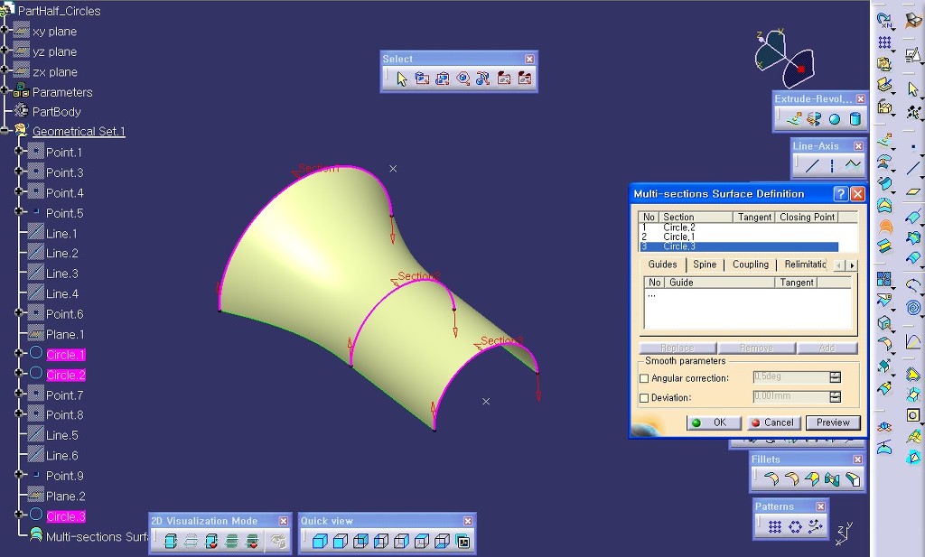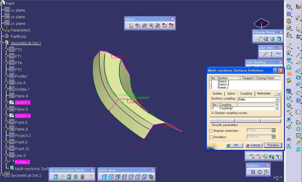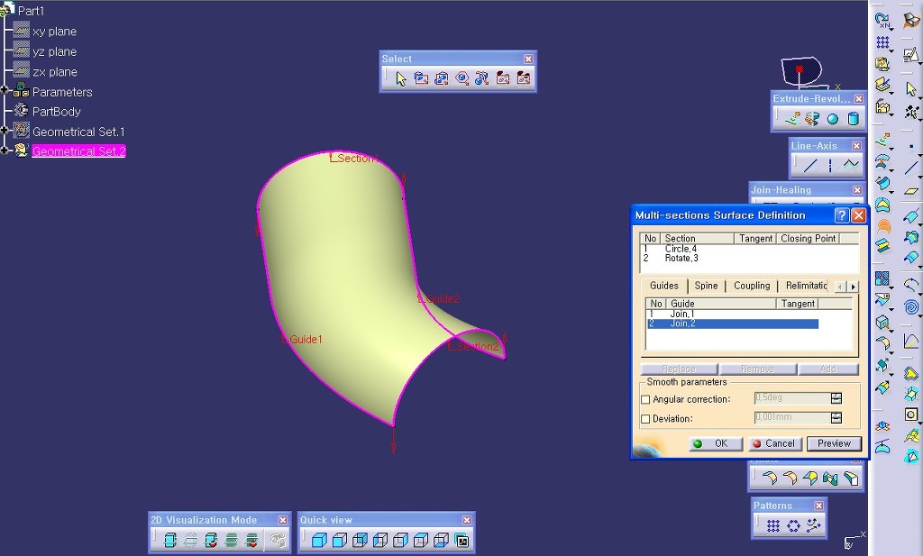 서로 다른 모양의 커브를 가지고 서피스를 생성할 때 사용합니다.