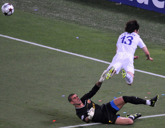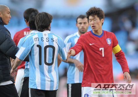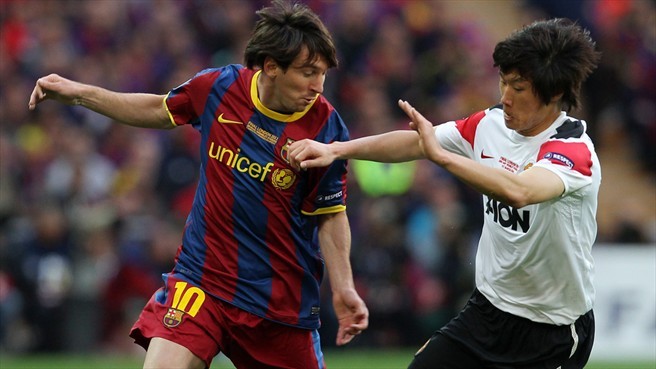 리오넬 메시의 역습을 명품테클로 차단하는 박지성