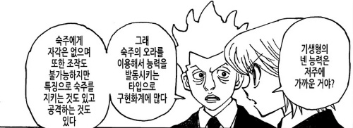 애초에 넨탄을 제외하면 넨을 방출시 구현화계 혹은 조작계의 능력을
