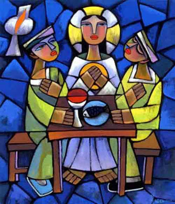 엠마오로 가는 두 제자의 이야기에서는 부활과, 주님과 함께 했던 신비의 만찬에 대한 체험이 깊게 어우러져 있습니다. 실망과 낙심에 잠긴 채, 두 제자는 터벅터벅 집으로 걸어가면서, 그 전 주간에 예루살렘에서 일어났던 일을 떠올리고 있었습니다. 예수님은 그들이 가는 길에 동행하시고, 그들과 대화하시고, 말씀을 가르쳐 주셨습니다. 이 낯선 여행자에 마음이 끌려, 두 제자는 가는 길을 멈추고 함께 저녁을 들자고 그분을 청합니다. 이 이야기에서, 예수님이 "떡을 떼실 때" 제자들의 눈이 열렸고 부활하신 그리스도가 함께 계심을 알아차리게 되었습니다. 부활하신 주님과의 만남으로 그들은 볼 수 있는 새로운 눈을 갖게 되었습니다. 더 이상 사물의 겉표면에만 머무는 눈이 아니었습니다. 이제는 보이지 않는 것을 볼 수 있게 되었습니다. 하나님이 그들을 보시듯, 그들도 세상과, 다른 사람들을 볼 수 있게 되었습니다. 자신들을 온통 둘러싼 부활의 씨앗들을 보게 되었습니다. 그리스도 안에서, 저들에게는 모든 것이 새롭게 되었던 것입니다.