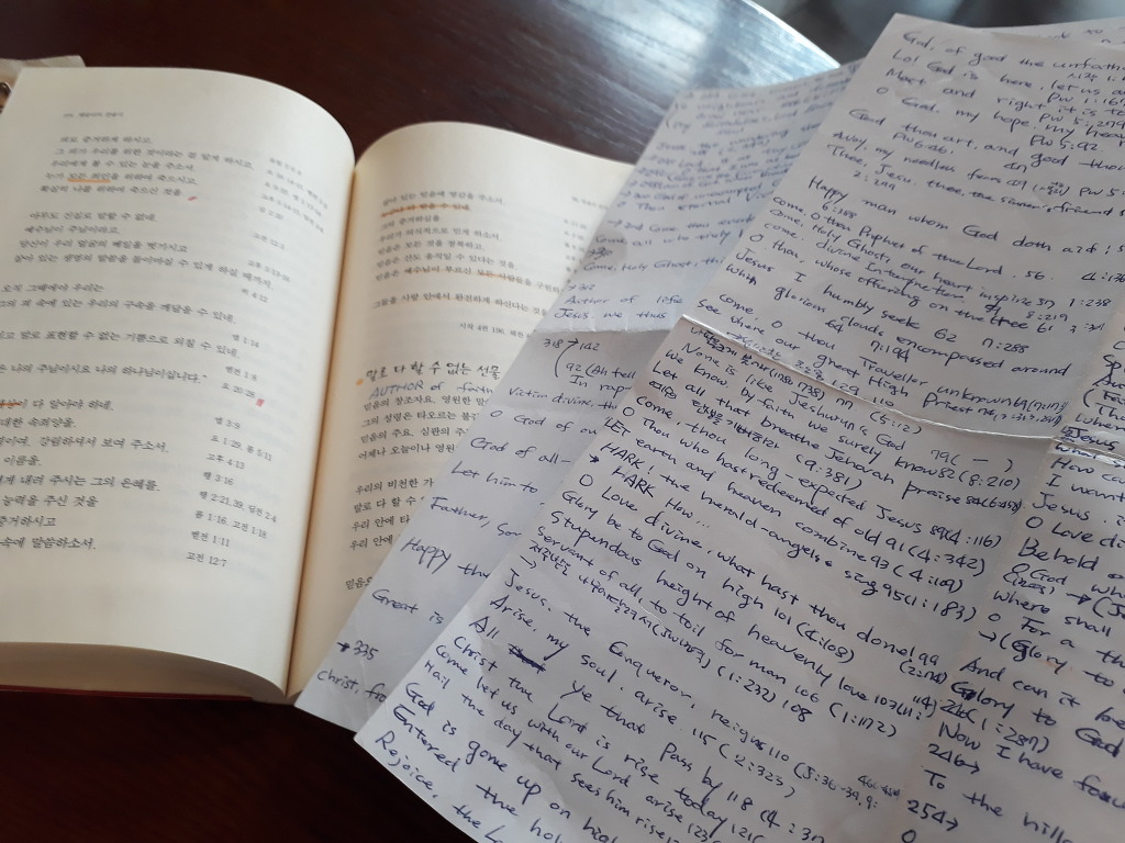 김무석 목사님은 답십리교회(예성)를 담임하던 시절, 병으로 몇 차례 사경의 고비를 넘기는 가운데도 '영혼을 가득 채우고 있는 찬송'을 통해 새 생명을 얻을 수 있었다고 고백합니다. 2000년에 이 책을 출판했는데 오늘 알아보니 은퇴 후 미국에 계시다 2007년에 소천하셨네요. (찰스 웨슬리 탄생 300주년이니 행복하셨을까...)