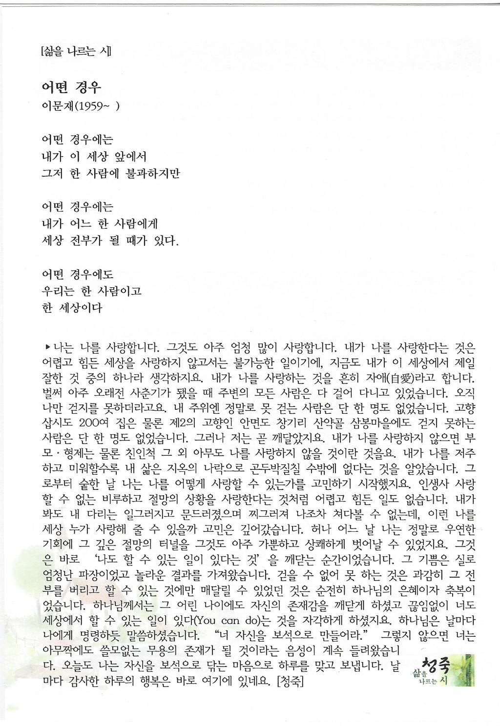 삶을 나르는 시 : 어떤 경우 : 이문재 작성자청죽|작성시간17.02.08|조회수37 목록 댓글 0 글자크기 작게가 글자크기 크게가 다음검색 현재 게시글 추가 기능 열기 북마크 공유하기 신고 센터로 신고 댓글 댓글 0 댓글쓰기 답글쓰기 댓글 리스트