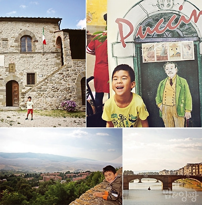 ★ 가브리엘 엄마 김미화 씨는 이탈리아인 남편과 여덟 살 아들 가브리엘과 함께 이탈리아에서 머물고 있다. 엄마로서, 아내로서 지친 일상을 달래주는 건 여행이라고 믿는다. 지난해 가브리엘과의 첫 여행기를 담은 <아이와 함께 떠난 토스카나 여행>을 펴냈다.