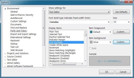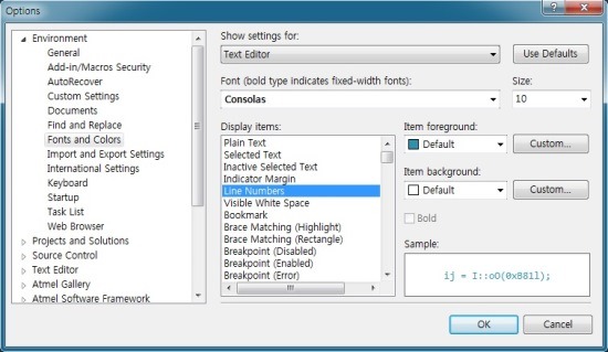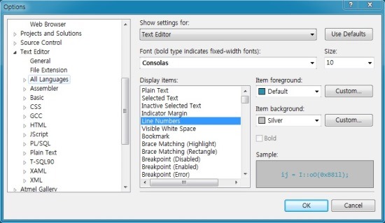 ■ Atmel Studio 6, 라인 넘버(Line numbers) 배경색상 변경하기.
