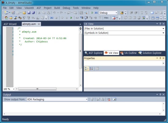 ■ Atmel Studio 6 설정 후, 텍스트 에디터(Text Editor) 확인.