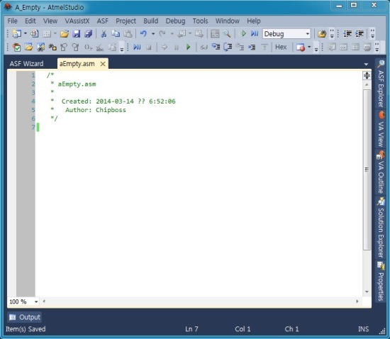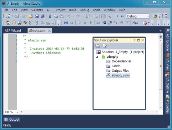 ■ Atmel Studio 6, 어셈블러(Assembler) 프로젝트 실행.