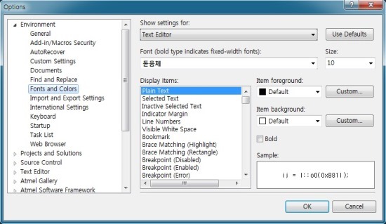 ■ Atmel Studio 6, 글꼴 및 배경색상 변경하기.