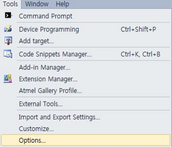 ■ Atmel Studio 6, " Options " 옵션 선택하기.