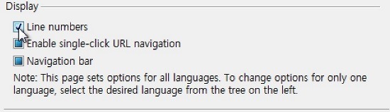 __① [단계 07] " Display items " 표시 항목에서 " Line numbers " 라인 넘버를 선택한다.