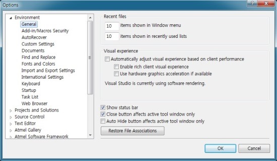 ■ Atmel Studio 6, 첫 번째 환경 설정 목록.
