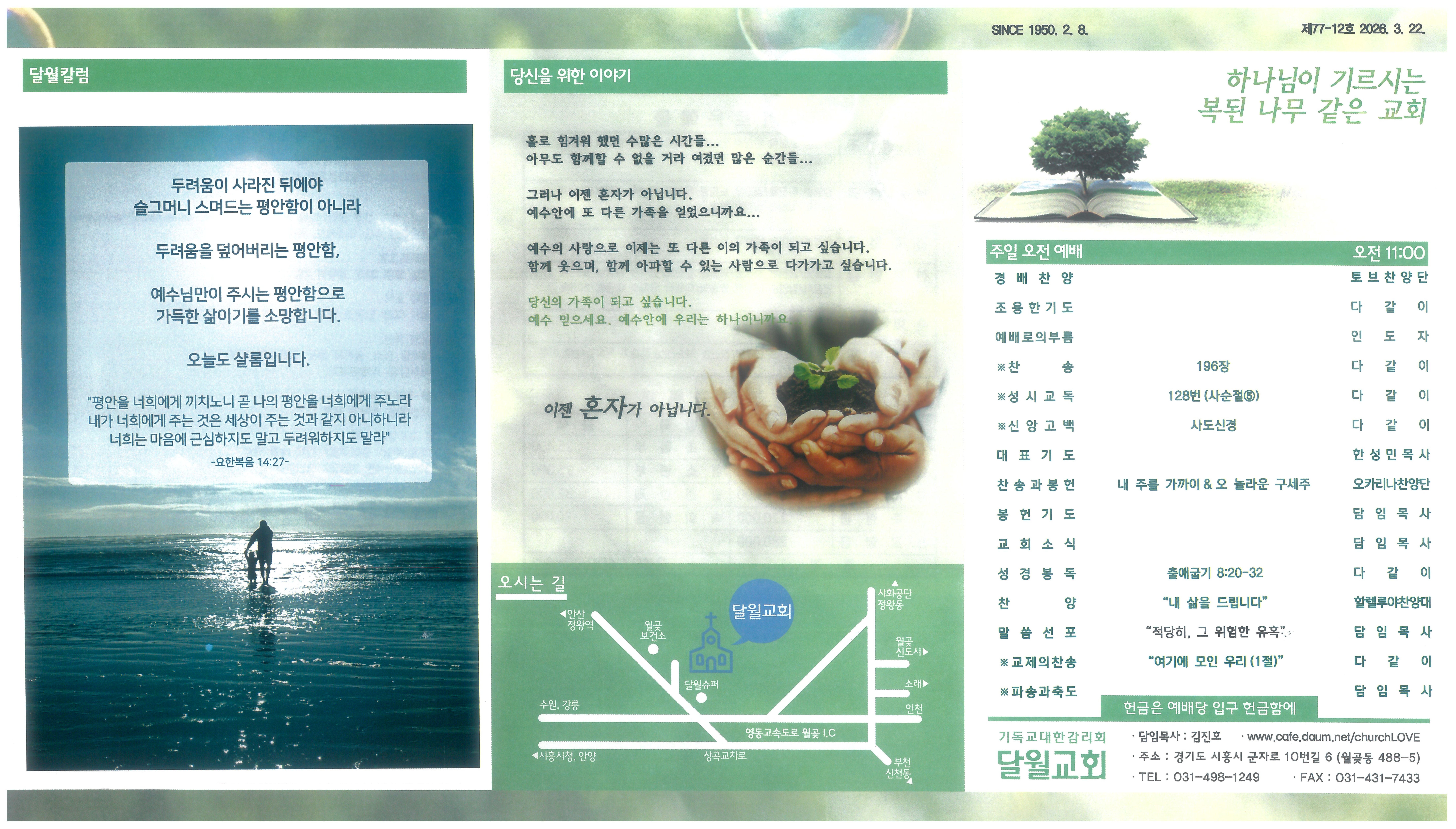 2026년 3월 22일 주보입니다 작성자한성민 목사|작성시간26.03.21|조회수44 목록 댓글 1 글자크기 작게가 글자크기 크게가 다음검색 현재 게시글 추가 기능 열기 북마크 공유하기 신고 센터로 신고 댓글 댓글 1 댓글쓰기 답글쓰기 댓글 리스트 작성자최재성 | 작성시간 26.03.22 수고하셨습니다 ^^~~~ 댓글 전체보기