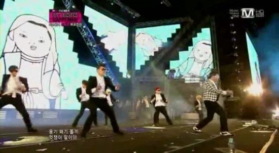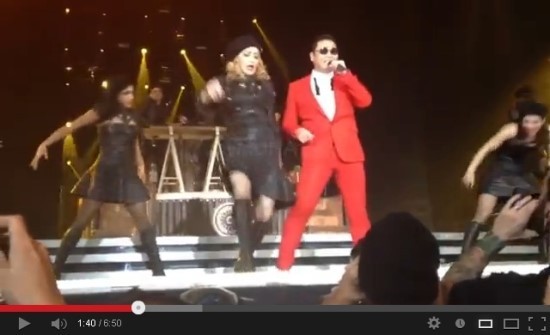 작년에 싸이가 마돈나의 공연에 초대되어 강남스타일을 부르는 모습
