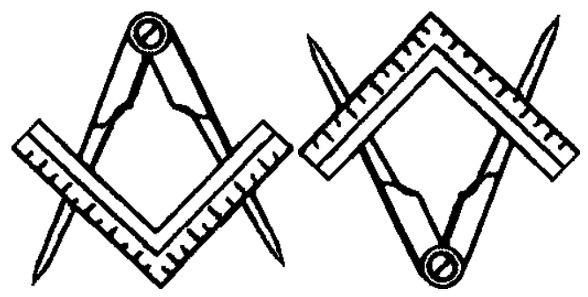 콤파스(남성을 상징)와 직각자(여성을 상징)를 뒤집은 모습(오른쪽)과