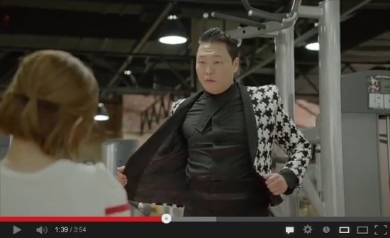 뮤비의 중요한 장면마다 체크무늬 자켓을 입은 싸이의 모습을 볼 수 있다.