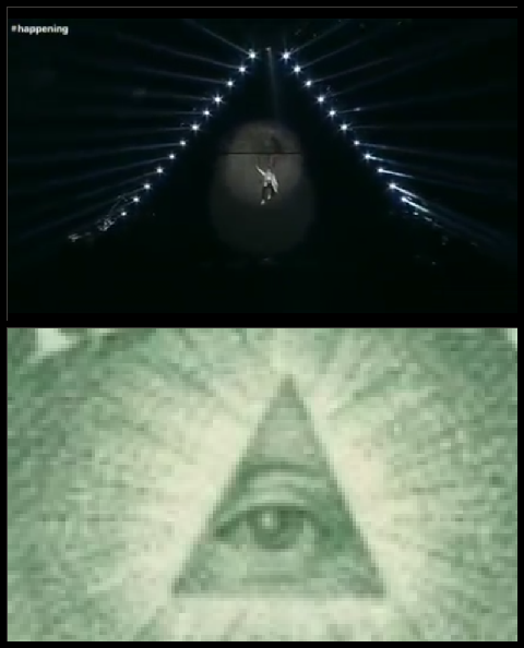 일루미나티의 대표적인 상징인 호루스의 눈(전시안)이 공중파 방송에서 무려 3만개나 전시되는 전무후무한 퍼포먼스를 벌인 것이다.