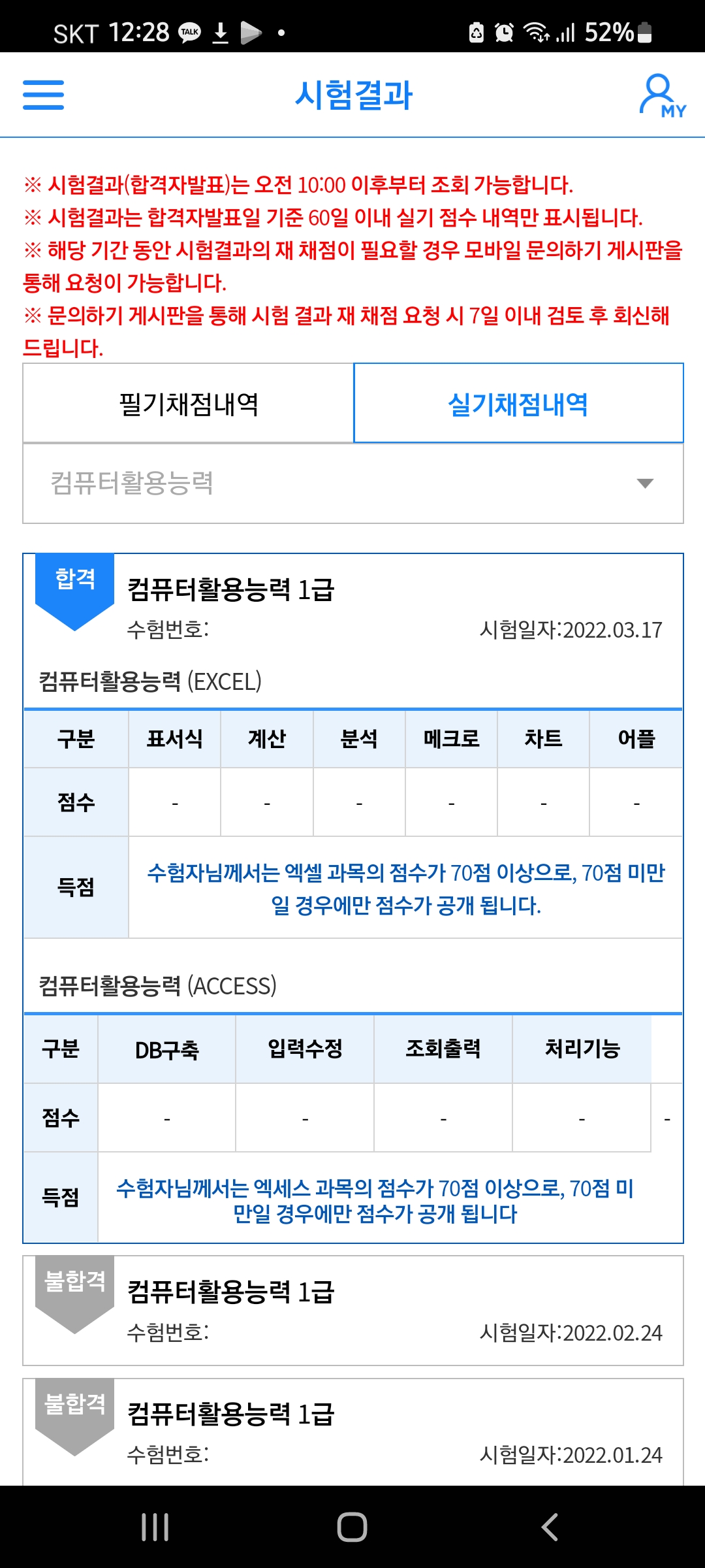 결국 시키는대로 성실히 해야 합격합니다 작성자은시|작성시간22.04.02|조회수101 목록 댓글 1 글자크기 작게가 글자크기 크게가 한 방 합격 못했습니다.한 방에 시키는대로 안했습니다. 결국 무료- 유료연장 다 쓰고 합격했습니다연장하지 말고, 스케쥴대로 성실히 이행하면한 방 합격 가능합니다 모두들 단기간에 합격하길 기원합니다 다음검색 현재 게시글 추가 기능 열기 북마크 공유하기 신고 센터로 신고 댓글 댓글 1 댓글쓰기 댓글 리스트 작성자일체유심조 | 작성시간 22.04.04 컴활 합격 너무너무 축하드립니다현재 컴활 합격수기 이벤트(매주추첨)를 진행중이니참여하셔서 혜택받아가시면 좋을것같습니다관련 링크 남겨드립니다감사합니다!https://cafe.daum.net/Compcafe/5XZ7/2930?svc=cafeapi 댓글 전체보기