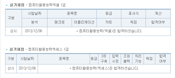 엑셀과 엑세스 시험이 끝나고 나니 모두 상설문제나 기출문제로 나왔던 문제들이어서 합격할 것이라는 확신이 들어 그 다음에는 시험을 보지 않았습니다ㅋ 말 그대로 한방합격했네요!! 알기쉽게 설명해주시고 여러가지 경우의 수를 가르쳐주셔서 더 이해하기 쉽고 응용문제를 푸는 데에도 좋았던 것 같습니다.