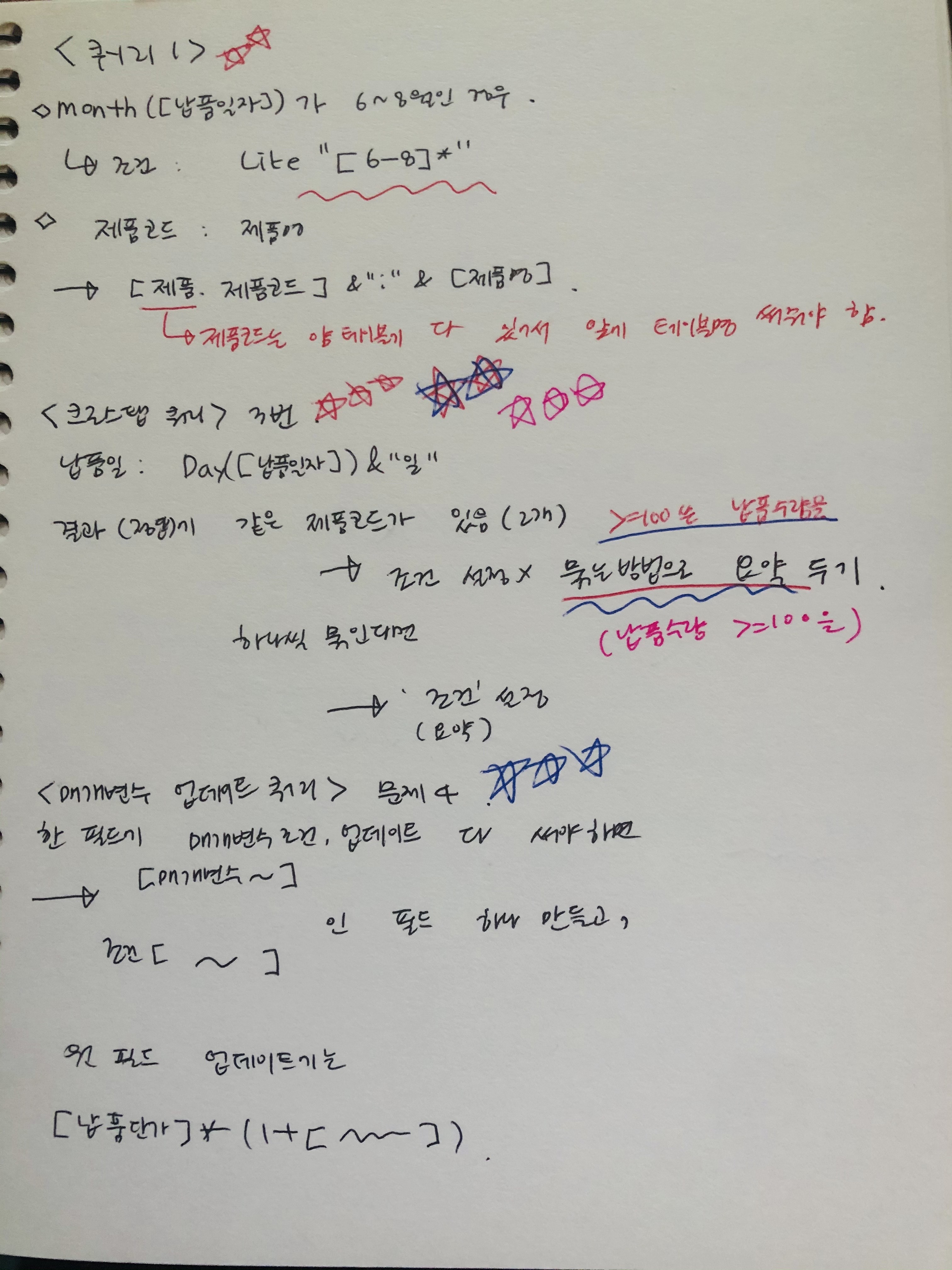 자주 틀리는 쿼리도 아래와 같이 오답노트에 정리하며 공부했습니다.