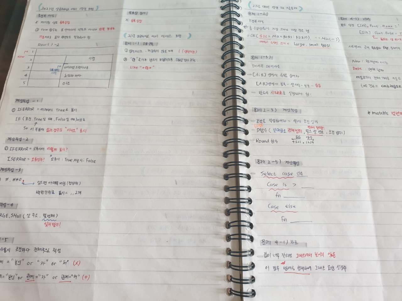 강의를 다 들은 후에는 암기가 가장 필요한 것 같은 엑셀 함수와 vba프로시저, 엑세스 이벤트 프로시저에 대해 노트 정리를 하였습니다. 처음에는 어렵지만 이 부분들이 외우기만 한다면 무조건 맞을 수 있는 부분입니다.