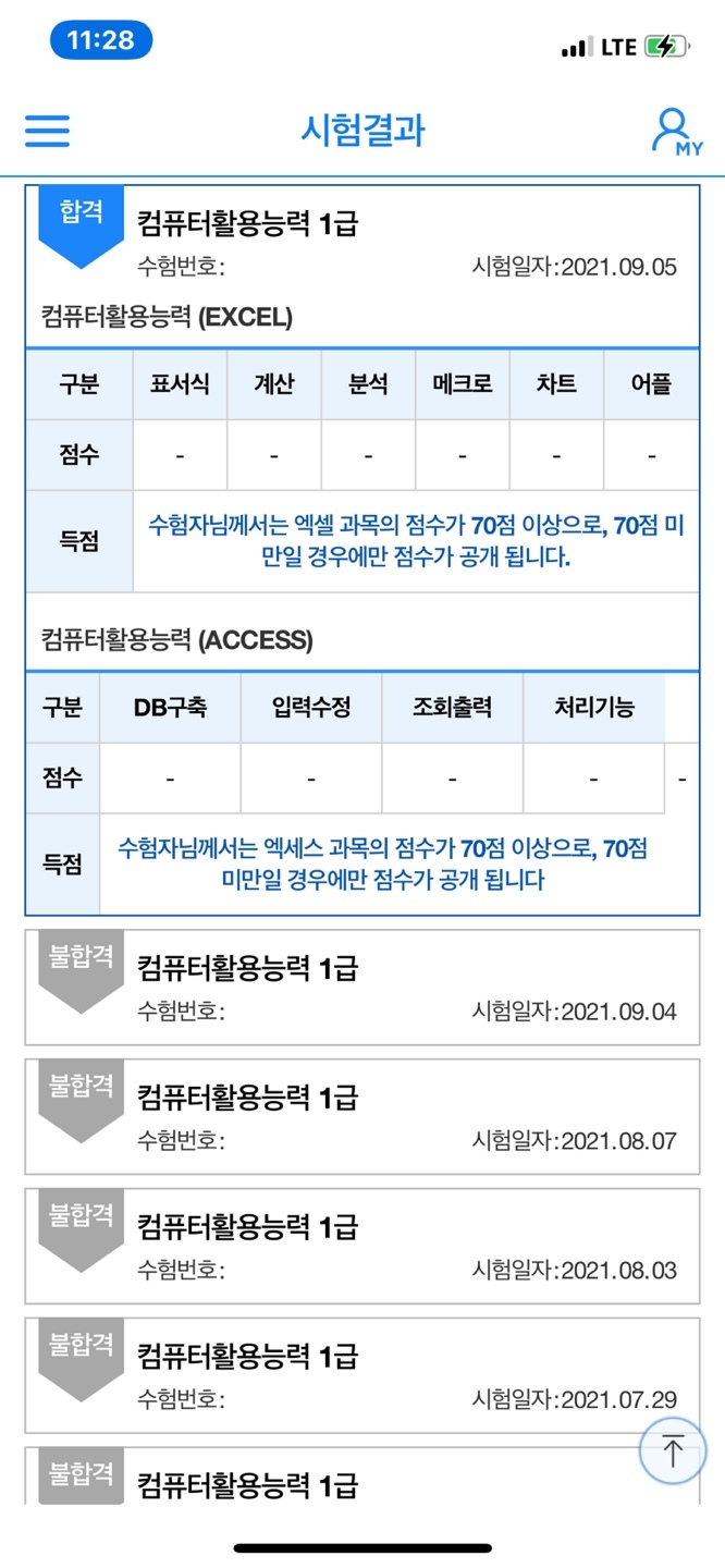 5. 시험전 틀린거 한번 훑고 메모장에 엑셀 , 엑세스 나눠서 정리하세요.