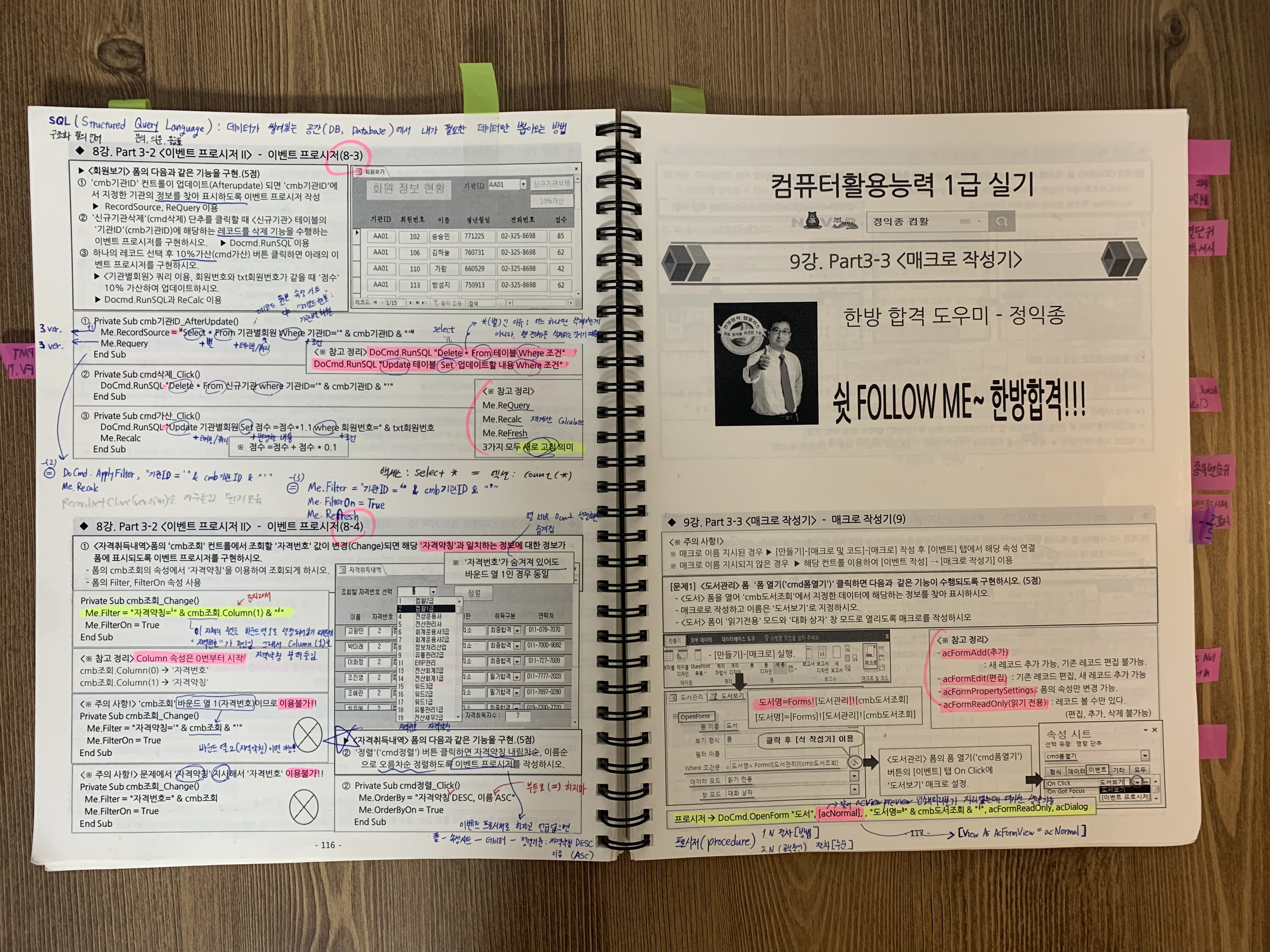 >>저는 막판에 진도나가기엔 시간이 부족해서 토막을 다 풀어보지도 못했어요. 엑셀토막은 12회까지, 액세스토막은 9회까지 연습했습니다. 토막 어느정도 풀었다면 우선 진도 나간 토막들은 확실히 아는게 중요합니다.