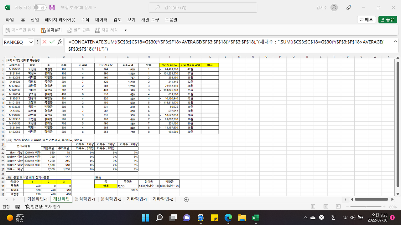 계산작업 문제1,3,4(4번 문제 존나 어렵지만 조졌다. 잘했다)