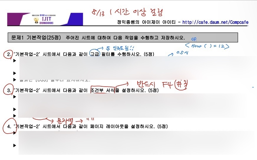 기출 풀면서 엑셀은 1-3-4-2 순으로 푸는 연습을 했고 액세스는 순서대로 풀었다.