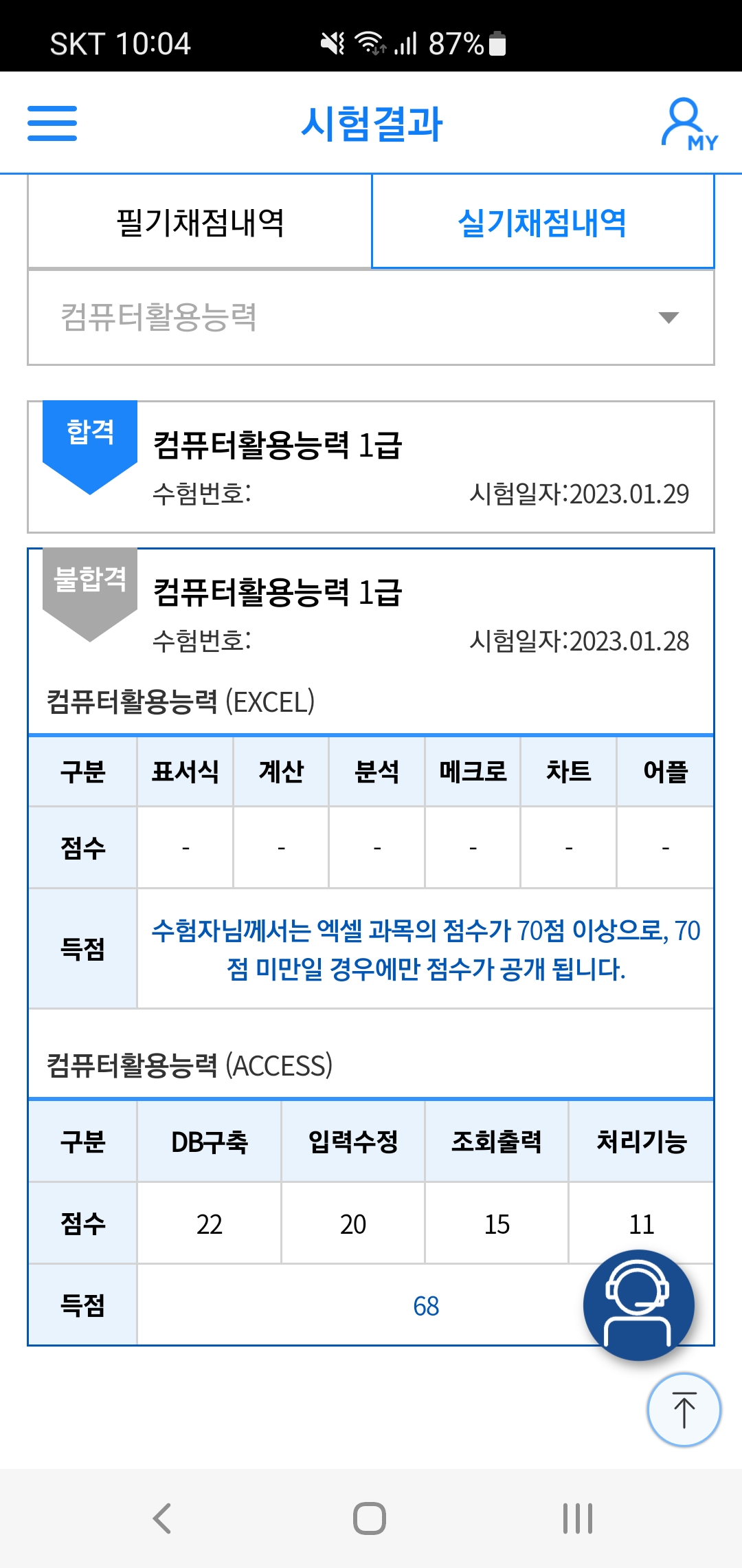 그렇게 엑셀에서 시험보고 바로 엑세스라 엑세스도 쉽게 안풀립니다. 저 엑세스 1번부터 막혀서 첫시험때 엑세스도 풀다가 시험 종료되었거든요....