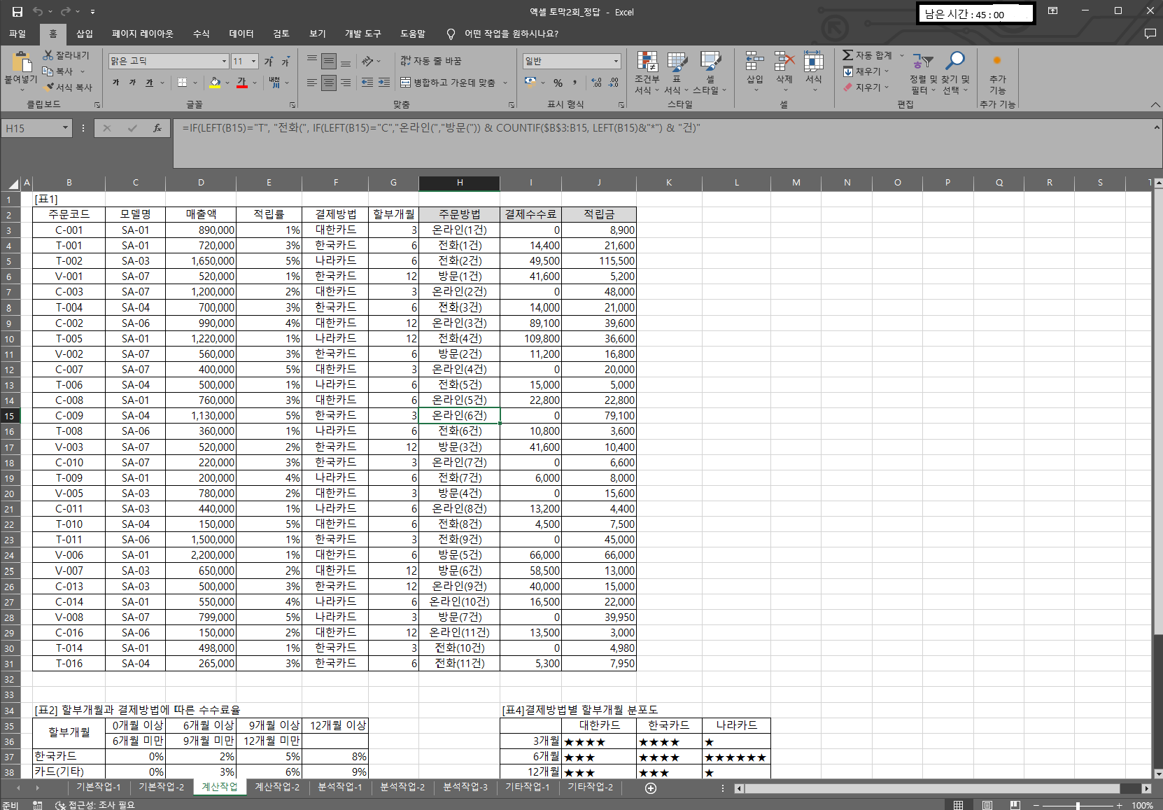 참고로 남은시간은 액셀창 우측 상단에 손가락 한마디 정도 크기로 떠있으니 참고