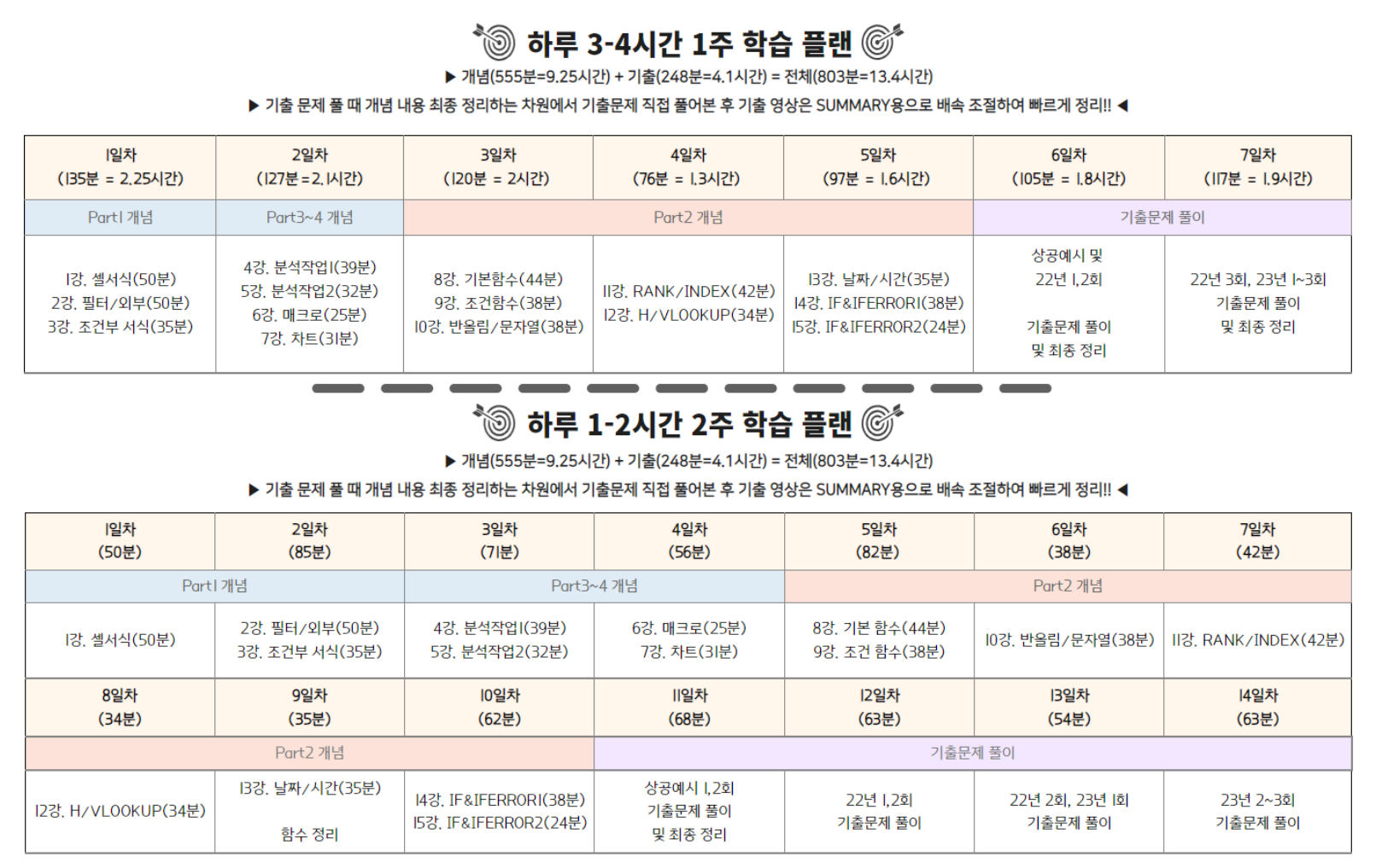 <컴활2급실기 1~2주 학습 플랜>