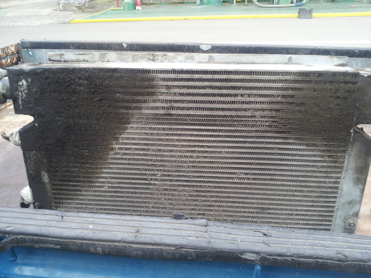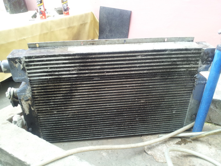 대우 50마력 공기압축기 복합쿨러 외관 세척후 (세척 전후 온도가 15℃ 낮아 졌다)