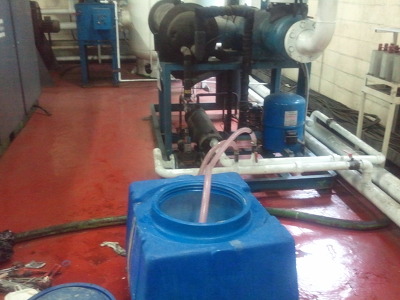 수냉식 냉동 드라이어 쿨러 세관 (세척액을 펌프를 이용하여 순환시켜 세관)