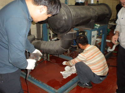 대우 콤프레샤(현, K2 에어콤프레샤) 구형, 50마력 장비 / 쿨러 분해 작업