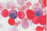 - 1) 골수에서는 iron particle이 histiocyte 안에서 푸른색으로 보이므로 저장 철 정도를 판정하고 핵이 있는 적혈구에서 세포질 내 작은 particle이 보일 경우 이것을 sideroblast라고 하며 만일 이것이 핵 주의에 granule로 둘러쌓여 있으면 ringed sideroblast라 부른다.